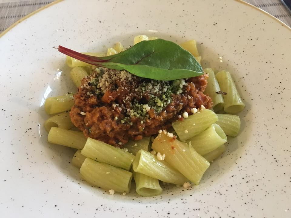 | Jeg ville ha lasagne bolognese, men den kunne jeg dessverre kun få på fireretters-menyen så jeg bestilte i stedet penne bolognese. Supergodt! Det var en slags nøtteparmesan på toppen, mmmm. |