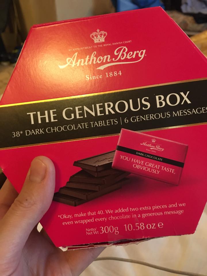 | Kaffepause på hotellet. Med sjokolade fra Anthon Berg |